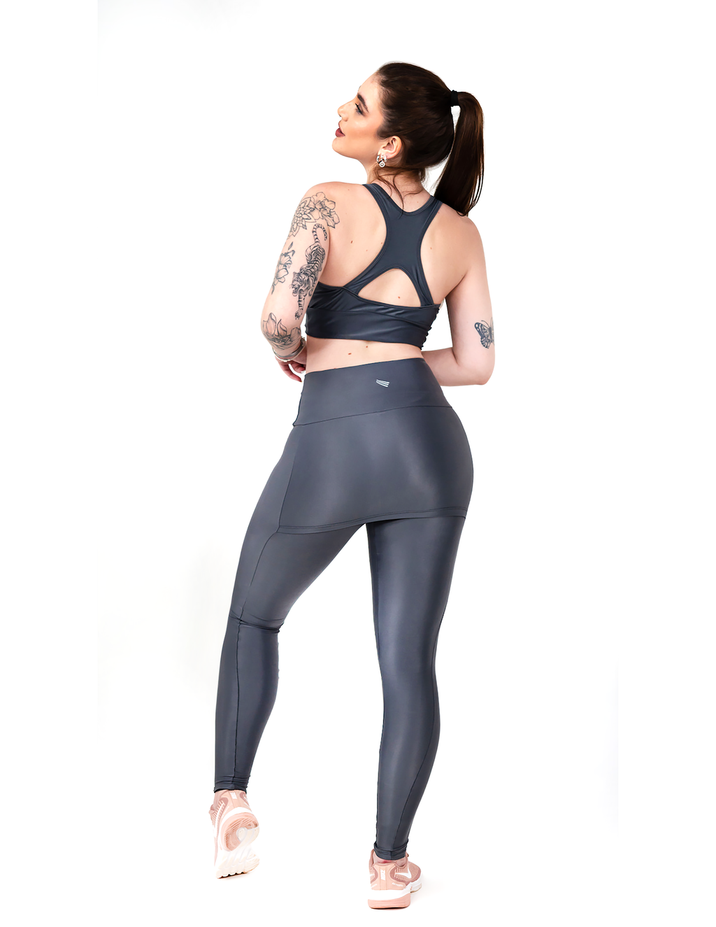 A Legging Giulia com SAIA. Confeccionada no tecido Atletika, fio homologado LYCRA.Tem muito elastano, sensação térmica de gelado, 72%poliamida 28% elastano.Toque acetinado e um brilho incrível.Zero transparência.Adapta-se a todos os tipos de corpos.