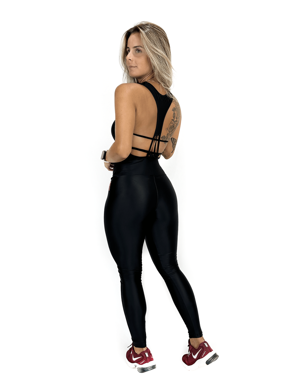 Macacão Atletika Tiras possui um brilho muito sofisticado, zero transparência, adapta-se a todos os tipos de corpos. Tem bojo fixo para dar sustentação busto.
