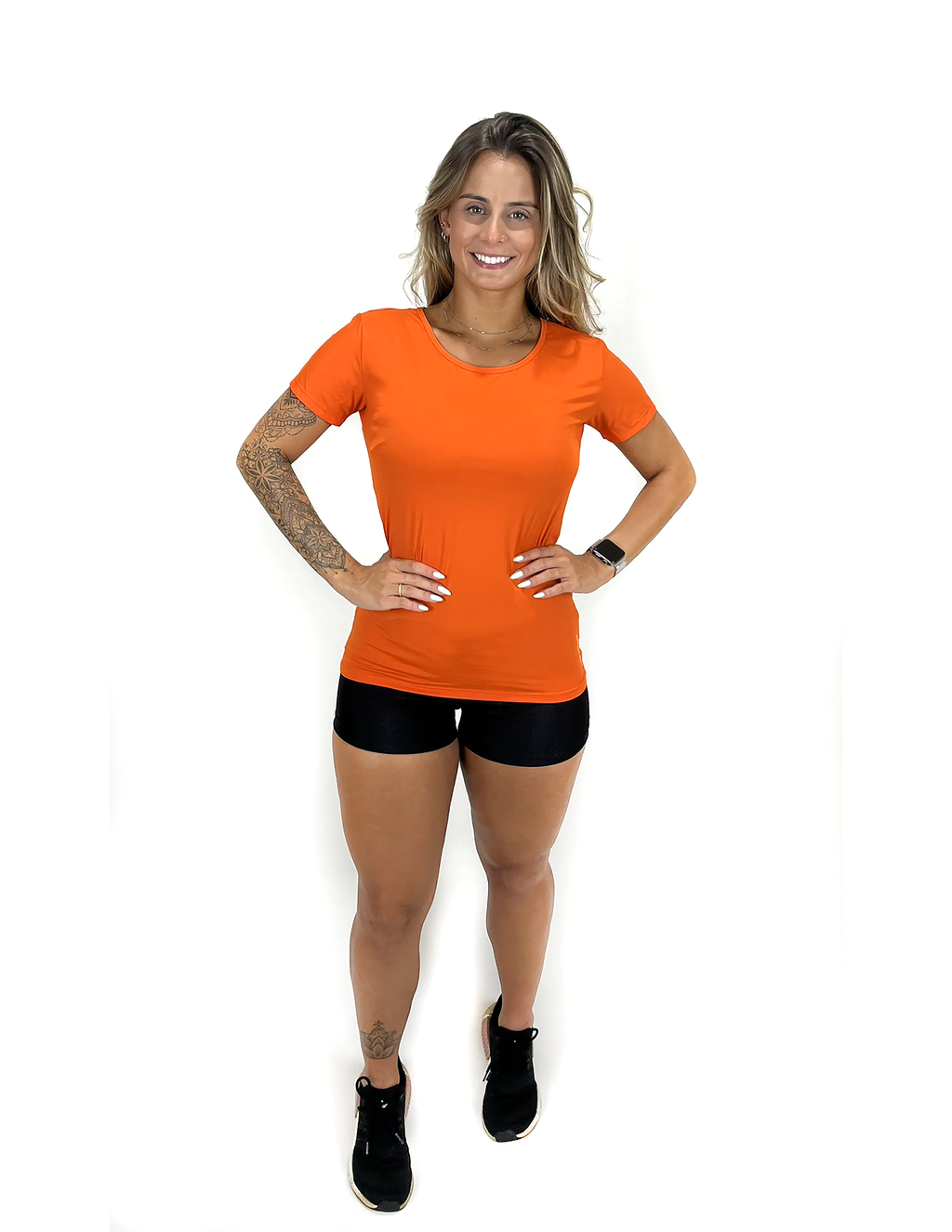 T-Shirt 88%POLIAMIDA e 10% ELASTANO, pode ser usada no dia a dia ou na prática de atividades físicas, perfeita para caminhadas, corridas, esportes no geral. É super leve e tem sensação gelada . Extremamente confortável, flexível e se ajusta ao corpo. Efeito modelador, tecnologia, secagem rápida e controle de Odor. Proteção UVA e UVB +50 FPS. Modelo veste P. PLU: 011689907TANGERINA